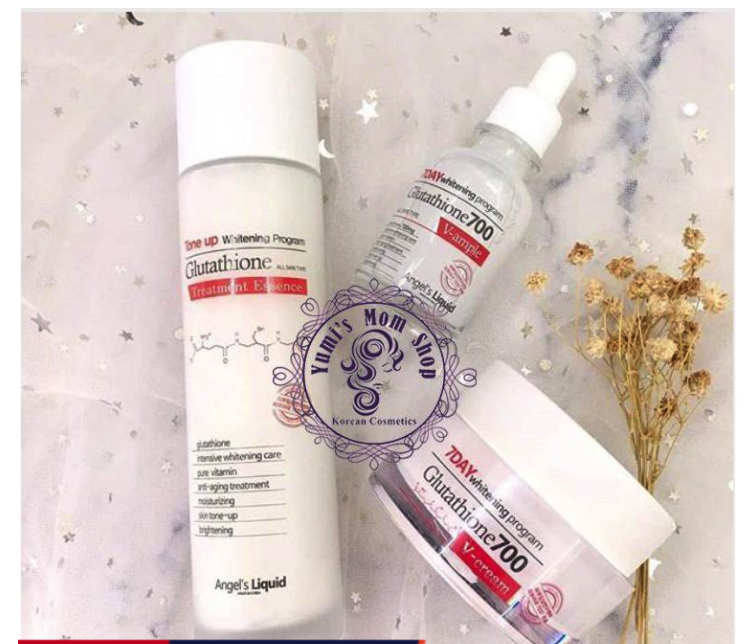 Bộ gồm 1 chai nước dưỡng trắng, trị thâm, cân bằng da Angel’s Liquid Tone Up Whitening Program Glutathione Treatment Essence 150ml 1 chai tinh chất dưỡng trắng, trị thâm, làm đều màu da Angel's Liquid 7 Day Whitening Program Glutathione 700 V-Ample 30ml 1 hủ kem dưỡng trắng, dưỡng ẩm, trị thâm da Angel's Liquid 7 Day Whitening Program Glutathione 700 V-Cream 50ml HƯỚNG DẪN SỬ DỤNG