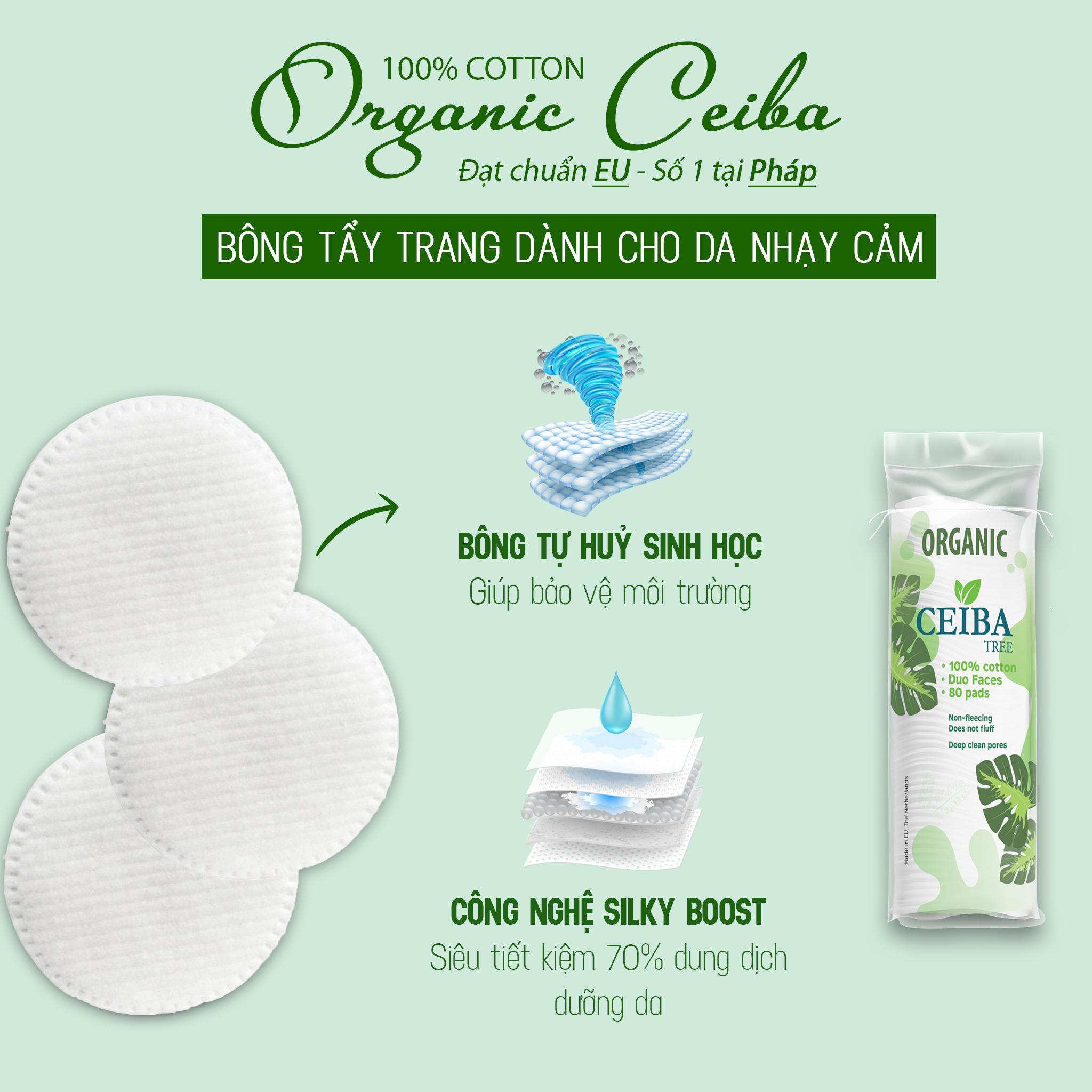 1. Bông tẩy trang Organic Ceiba với công năng kép: TIẾT KIỆM DUNG DỊCH + LÀM SẠCH SÂU LÀN DA