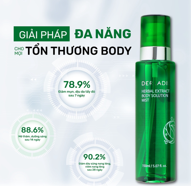 Xịt 4in1 Loại Bỏ Mụn, Mờ Thâm, Giảm Viêm Nang Lông Derladie Herbal Extract Body Solution Mist 150ml