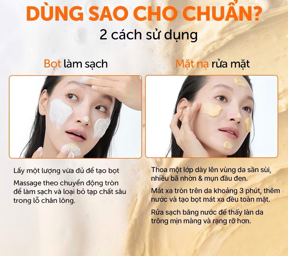 >> Sau đó tạo bọt nhẹ và rửa lại như sữa rửa mặt.