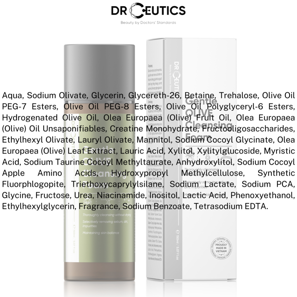 DRCEUTICS Sữa Rửa Mặt Gentle Olive Cleansing Foam Giúp Làm Sạch Sâu Cho Mọi Loại Da là sản phẩm có khả năng tạo bọt mịn, dễ dàng len lỏi vào sâu bên trong da giúp làm sạch bã nhờn và các tạp chất gây tắc nghẽn lỗ chân lông mà vẫn duy trì được độ ẩm trên da.