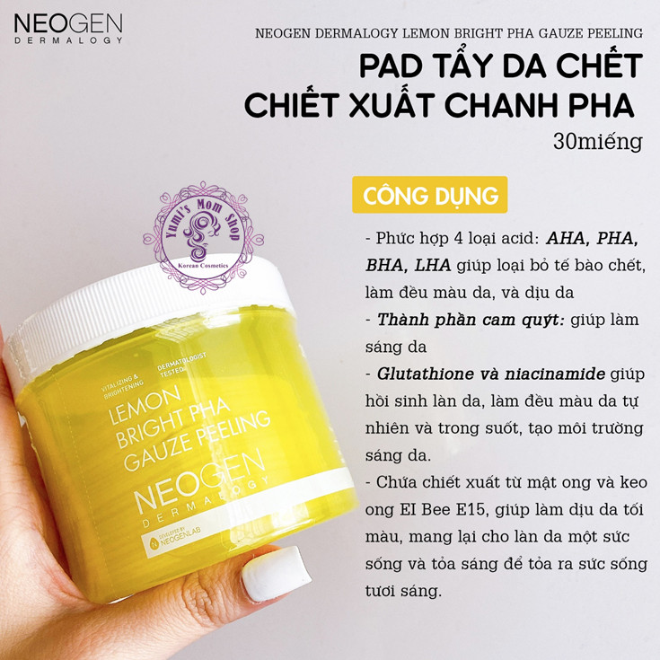 2. PAD TẨY DA CHẾT CHIẾT XUẤT CHANH PHA, DƯỠNG SÁNG DA - NEOGEN DERMALOGY LEMON BRIGHT PHA GAUZE PEELING 30 PADS