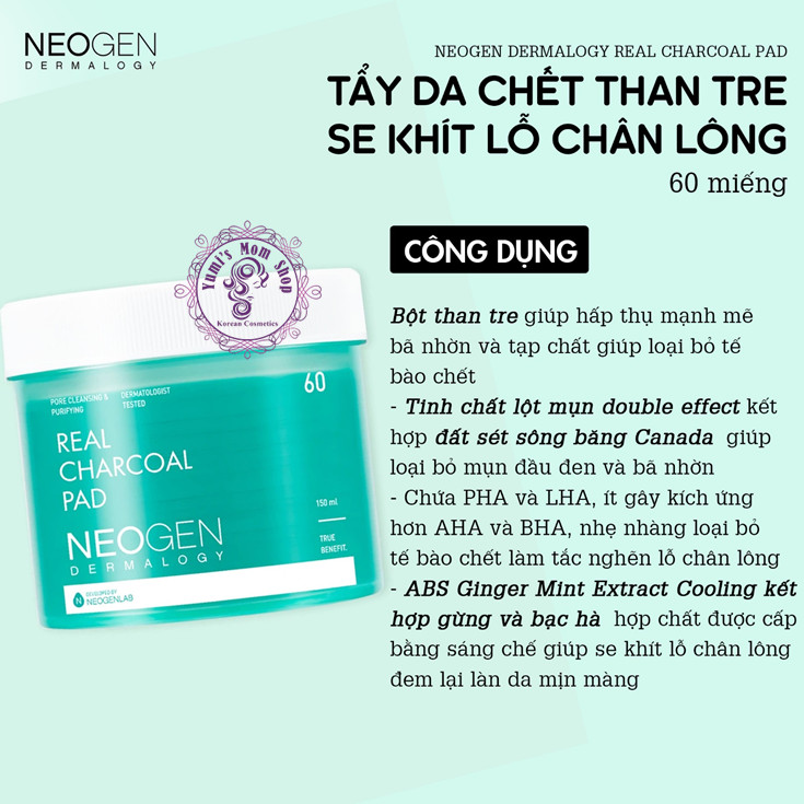 3. PAD TẨY DA CHẾT THAN TRE SE KHÍT LỖ CHÂN LÔNG NEOGEN DERMALOGY REAL CHARCOAL PAD 60 PADS
