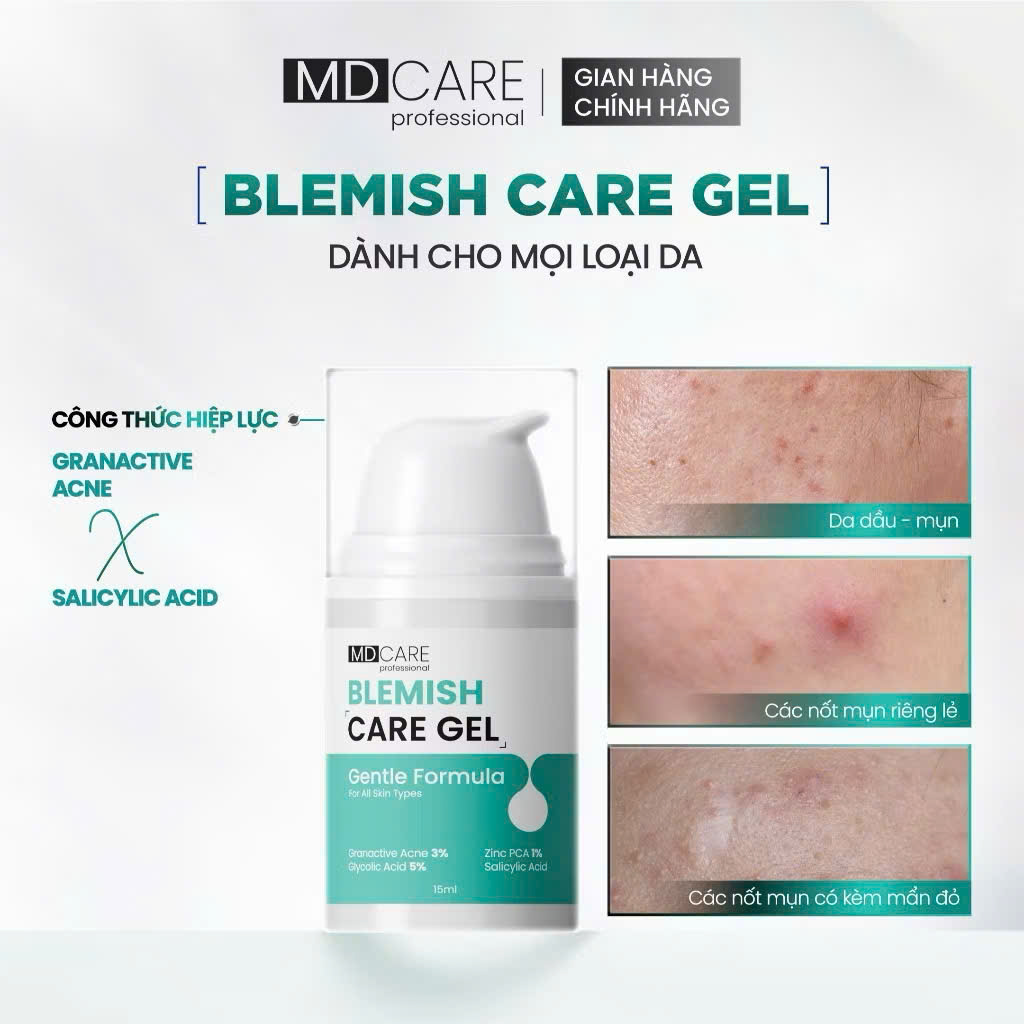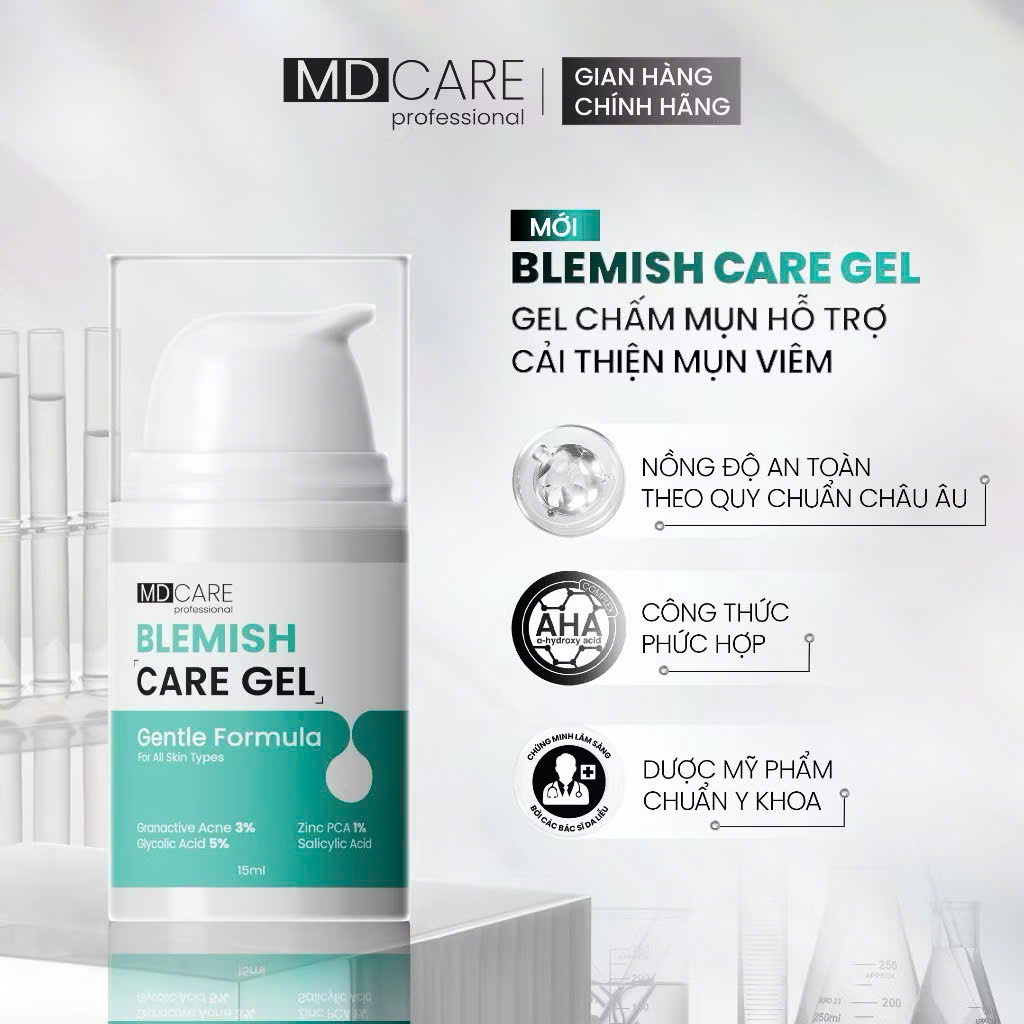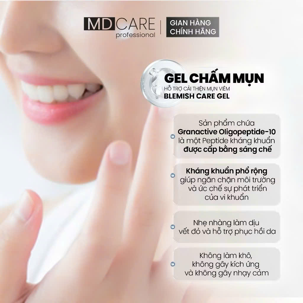 Gel Chấm Mụn Hỗ Trợ Làm Dịu Và Cải Thiện Mụn Viêm MD CARE Blemish Care Gel 15ml