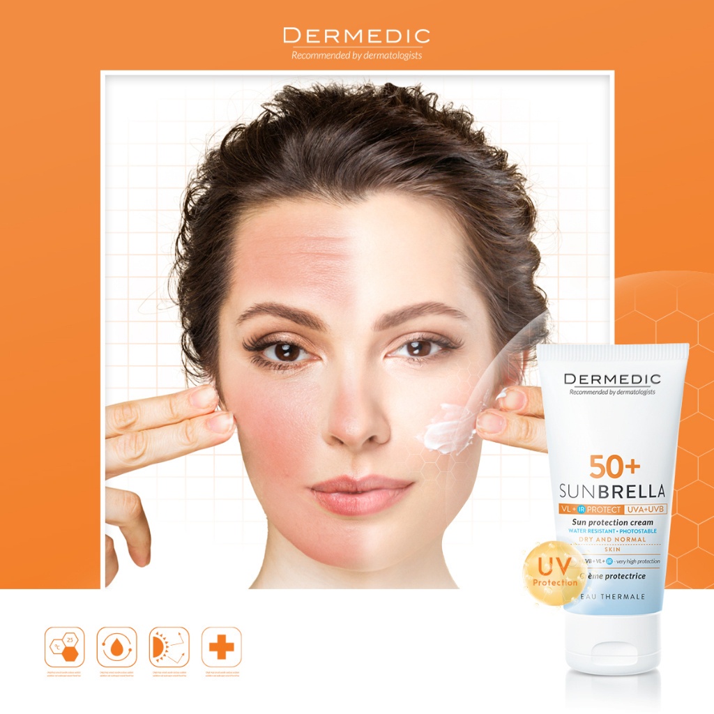 SUNBRELLA SPF 50+ Sun Protection Cream Dry And Normal Skin là kem chống nắng dành riêng cho da khô, da mất nước. Khi da khô và mất nước thì các dấu hiệu lão hóa cũng thi nhau xuất hiện: bong tróc, ngứa, ửng đỏ, nếp nhăn hình thành. Lúc này bảo vệ da là điều cần thiết, SUNBRELLA SPF 50+ Sun Protection Cream Dry And Normal Skin không chỉ có công dụng giúp da chống lại tia mặt trời mà còn làm dịu da, đẩy nhanh sự phục hồi nhờ hoạt chất Allantoin. Đồng thời tăng cường giữ ẩm với hoạt chất linh hoạt Glycerin.