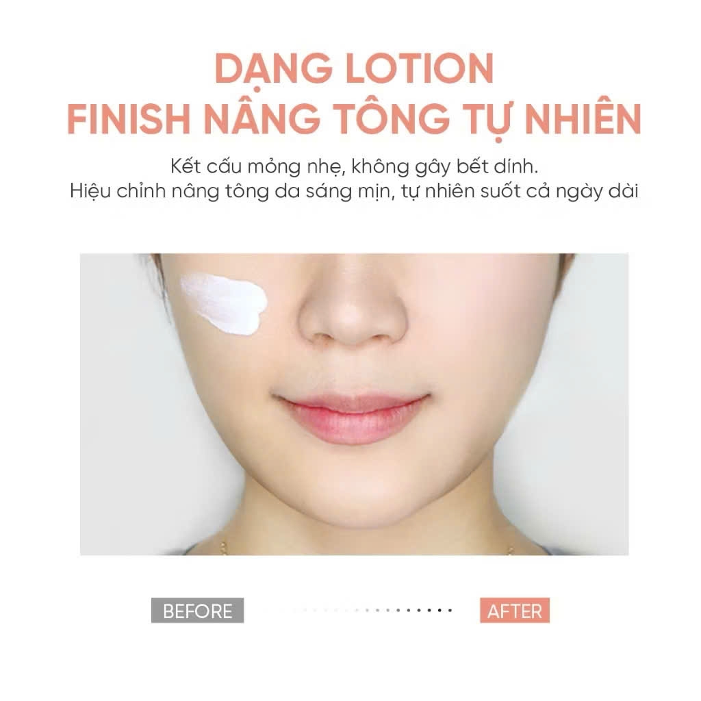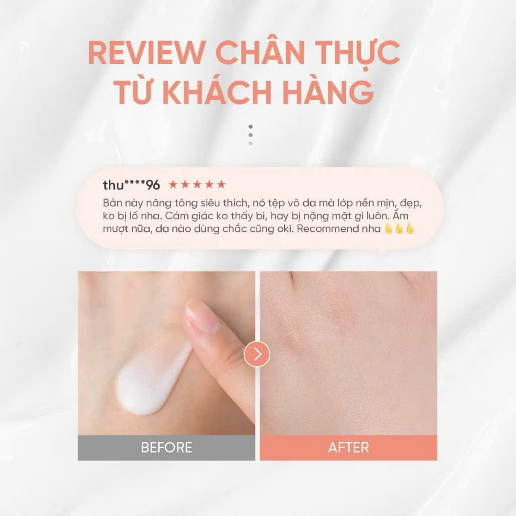 ✔️Hiệu ứng nâng tone nhẹ – Cho làn da rạng rỡ tự nhiên, có thể dùng như lớp lót trang điểm hàng ngày.