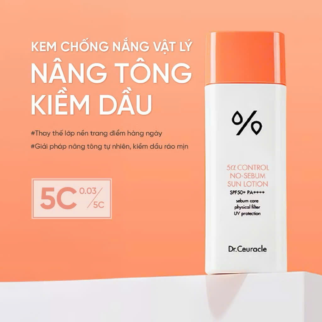🌟Kem chống nắng vật lý nâng tone, kiềm dầu 5α Dr.Ceuracle Control No-sebum Sun Lotion SPF50+ PA++++ 50ml🌟