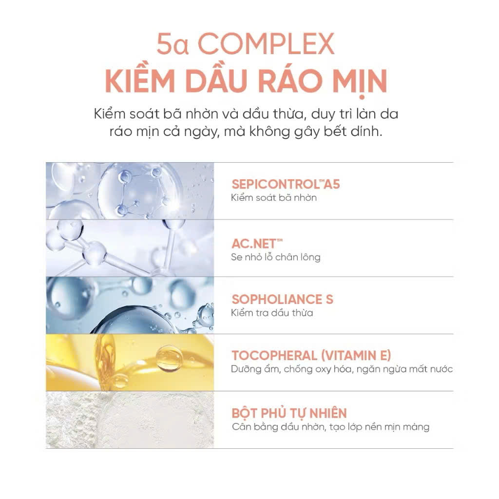 ◾ SEPICONTROL™ A5: Cân bằng bã nhờn và làm dịu da (gồm Capryloyl Glycine, Sarcosine, Chiết xuất vỏ quế)