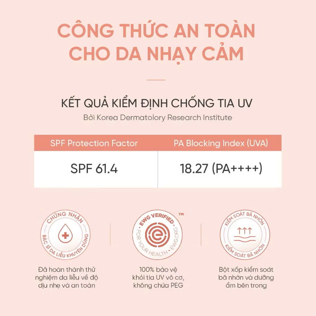 ✔️Chống nắng phổ rộng SPF50+ PA++++ – Bảo vệ da toàn diện dưới ánh nắng gay gắt.