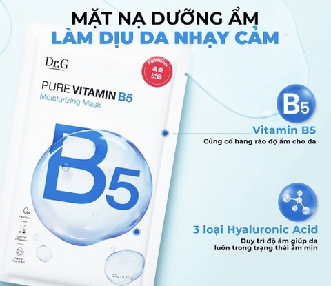Mặt nạ Dr.G Pure Vitamin B5 Moisturizing Mask giúp cung cấp dồi dào độ ẩm cho làn da khô, da thiếu ẩm, hỗ trợ làm dịu và hồi phục sức sống cho làn da đang nhạy cảm, mệt mỏi