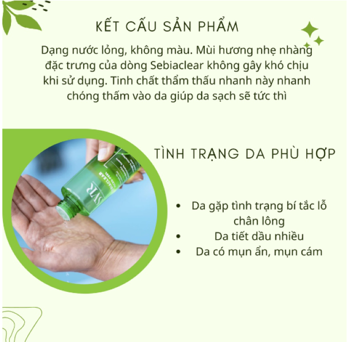 SEBIACLEAR MICRO-PEEL là sản phẩm mới, một loại nước cân bằng da, dưỡng da giúp chống lại các khuyết điểm, làm sạch da và thông thoáng lỗ chân lông.