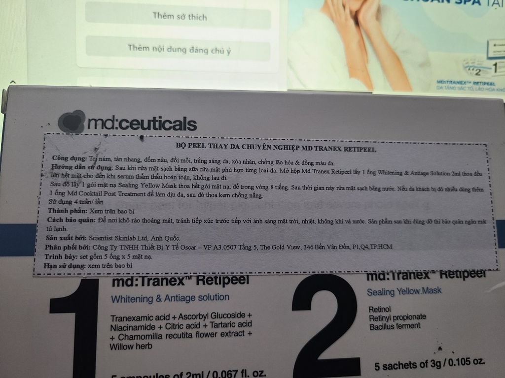 md:Tranex™ Retipeel – Thay da sinh học giảm nám sáng da và chống lão hóa