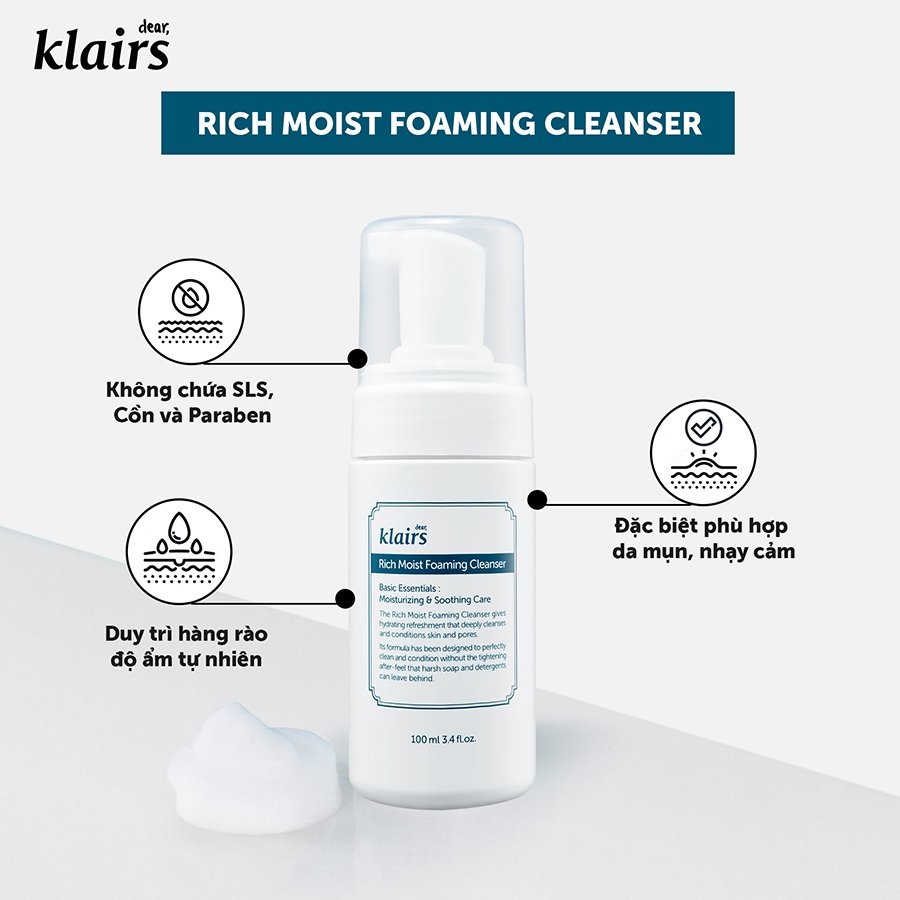 Sữa Rửa Mặt Klairs Rich Moist Foaming Cleanser