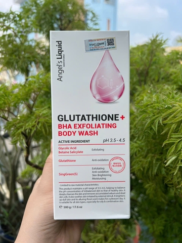 SỮA TẮM GIẢM MỤN, DỊU ẨM LÀN DA ANGEL'S LIQUID GLUTATHIONE + BHA EXFOLIATING BODY WASH