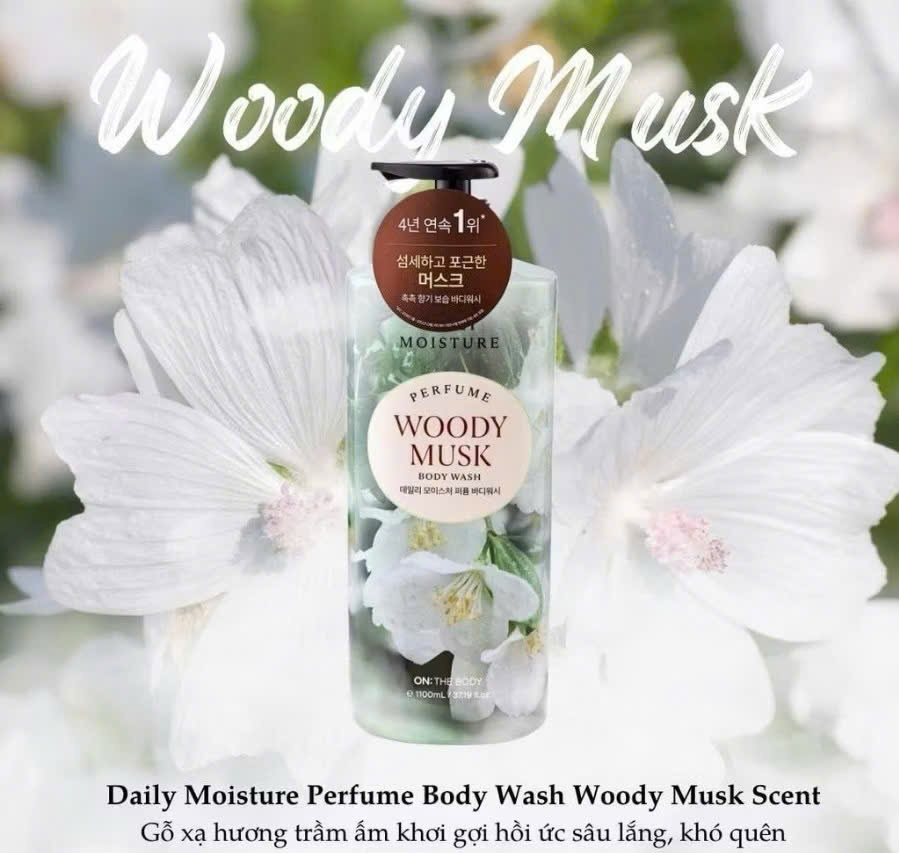 Sữa tắm ON: PERFUME BODY WASH WOODY MUSK SCENT có chứa tinh chất hương gỗ xạ hương mang đến cho bạn cảm giác tươi mới và ấm cúng với mùi thơm của nước hoa bao quanh xạ hương ấm áp, thành phần chăm sóc da (panthenol, niaciamide) và độ pH 5.5 có tính axit nhẹ. Đây được ví như kiệt tác của một chuyên gia nước hoa chuyên nghiệp mang lại mùi hương quyến rũ, làn da mịn màng ngay cả sau khi tắm.
