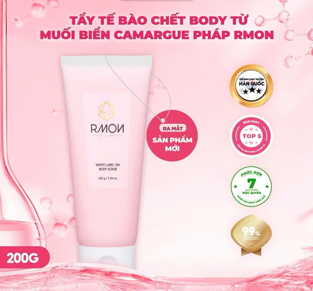 TẨY TẾ BÀO CHẾT BODY MUỐI HỒNG CAMARGUE PHÁP RMON 200G - RMON WHITE LABEL DIA BODY SCRUB