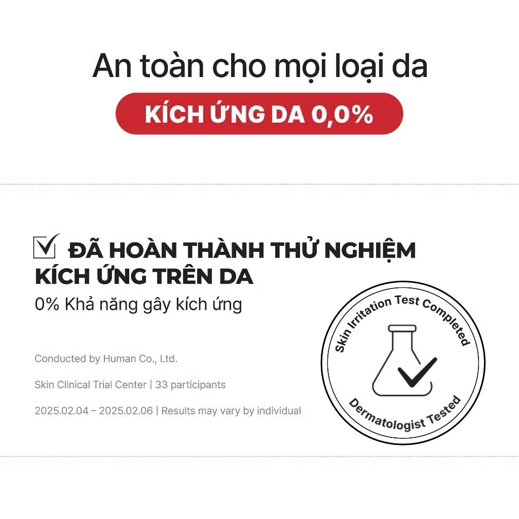 LƯU Ý : Khuyến khích dùng thử ở vùng da nhỏ trước khi thoa toàn mặt.