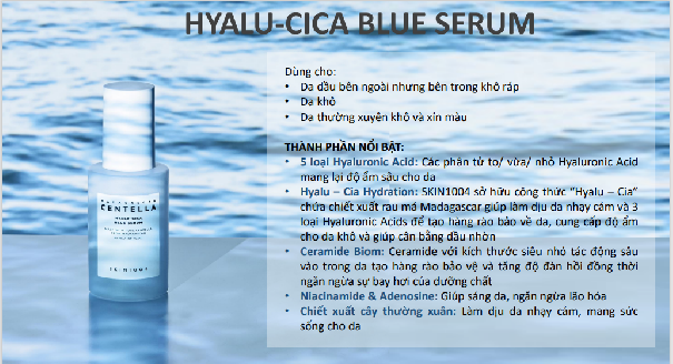- Tinh chất dưỡng da chứa 5 lớp Hyaluronic Acid với các kết cấu phân tử khác nhau, cùng công thức HYALU - CICA (chiết xuất Rau má và 3 loại Hyaluronic Acid) để tăng cường hấp thụ và giúp bổ sung độ ẩm dồi dào vào sâu trong da, mang đến hiệu quả dưỡng ẩm kéo dài, làm dịu da nhạy cảm.